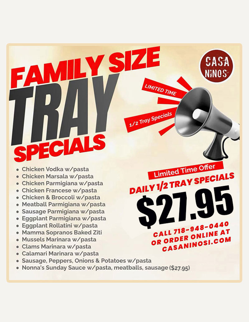 Casa Nino's Pizza Bar has been a staple of the Staten Island South Shore community since 1997. This authentic Italian pizzeria highlights our passion for the finest ingredients, honest cooking, and vast variety. Our menu features a wide selection of dishes, all made in-house by our talented team.